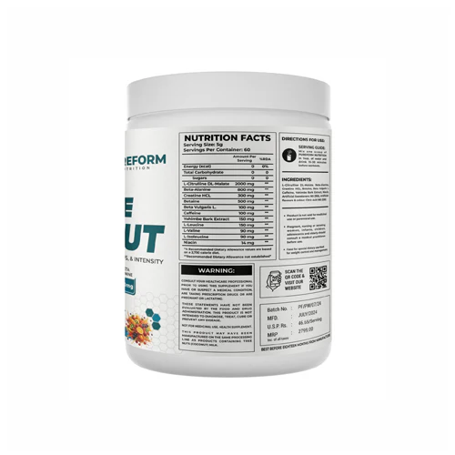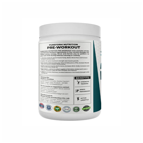 PureForm Premium Pre-Workout is meant to increase your energy, concentration, and intensity of workout. Every serving contains 2g L-Citrulline Malate, 300mg Creatine Nitrate, 100mg Caffeine, and 800mg Beta-Alanine to produce explosive performance. The Fruit Punch flavor pre workout comes with 60 servings in 300g of contents provides a refreshing kick before going to the gym. It is the ideal pre-training energy drink used by athletes who desire to get heavier, longer training time and quicker recovery.